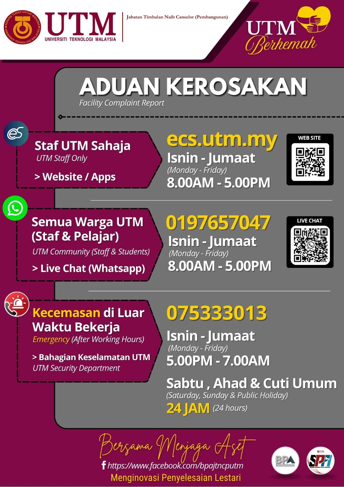 Isnin – Khamis : 8:00 pagi – 5:00 petang