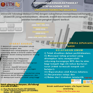 Iklan Bagi Permohonan Kenaikan Pangkat Staf Akademik UTM (Terbuka Sepanjang Tahun)