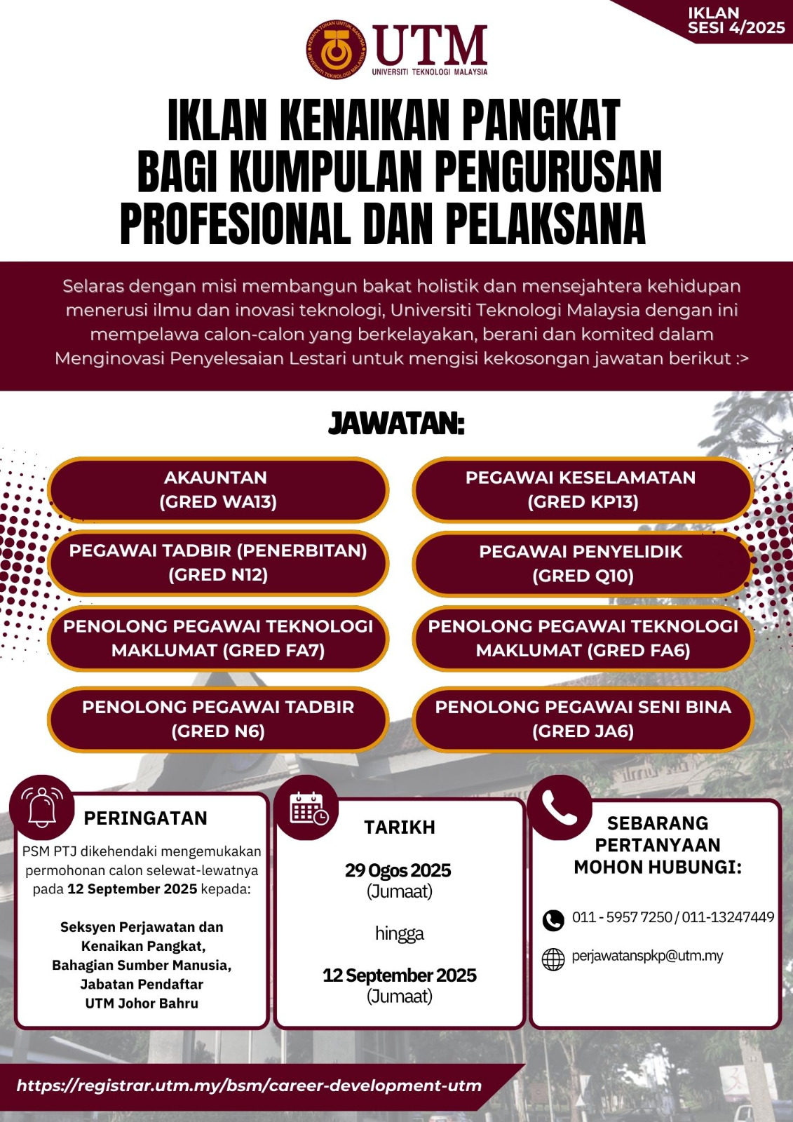 Tarikh Tutup Iklan : 12 SEPTEMBER 2025 (JUMAAT)